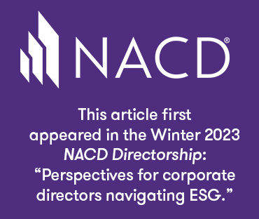 A well-developed ESG strategy, including reporting, can be a very powerful contributor to growth, profitability, employee retention and other measures of success. It’s time to make it a bigger part of the board’s agenda.