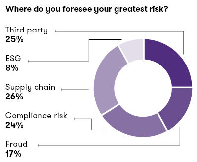 Where do companies see the greatest risk? In a poll taken during a recent Grant Thornton executive forum on risk, attendees indicated that they see supply chain, third-party and compliance risks in almost a three-way tie.